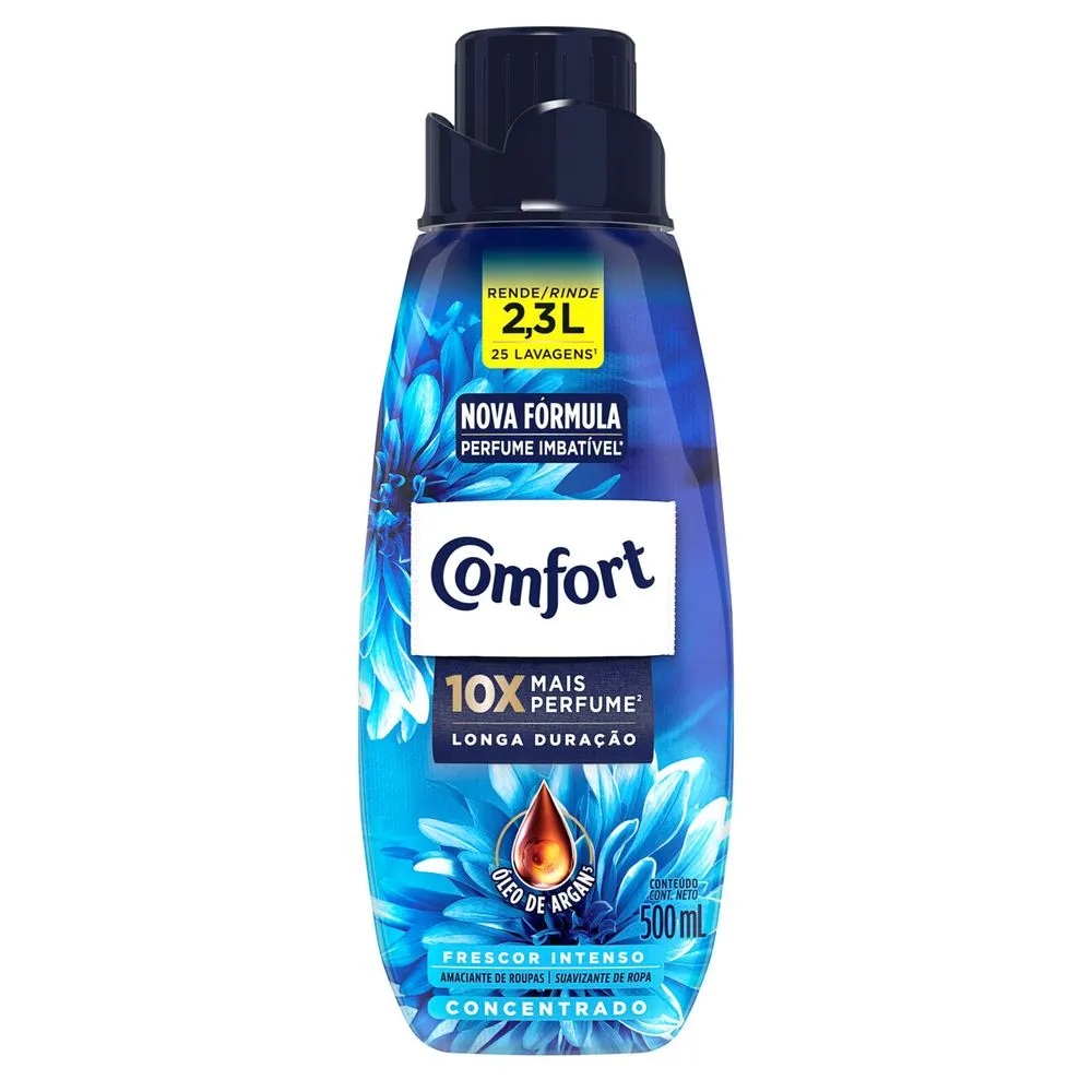 • O Amaciante Concentrado Comfort Frescor Intenso tem 10x mais perfume** de longa duração, por isso deixa suas roupas perfumadas por muito mais tempo.