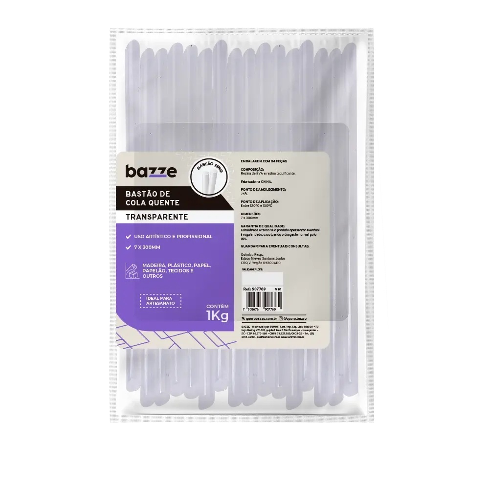• A cola de silicone fina Bastão Bazze é ideal para artesanato.