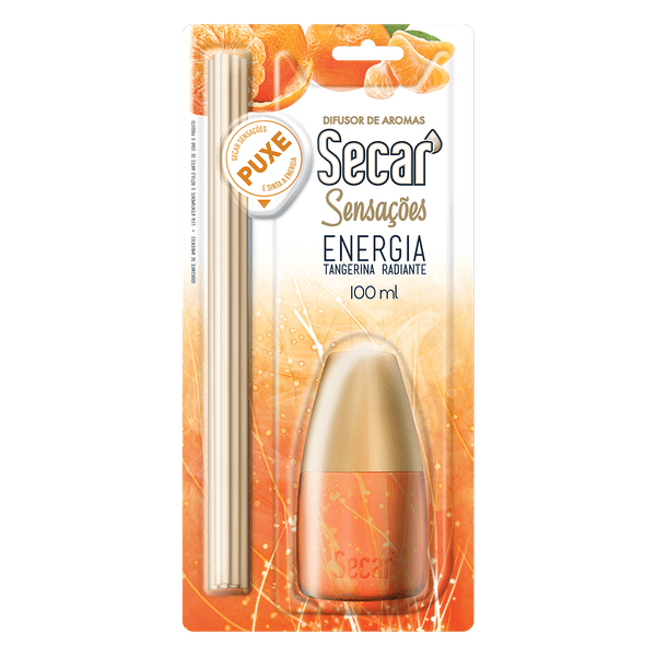 • O Difusor de Aromas Secar Energia Tangerina Radiante possui uma fragrância vibrante que irradia alegria, leveza e frescor.