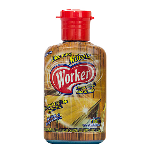 Modo de Usar: Retire a poeira da superfície a ser limpa. Coloque uma fina camada do produto em um pano limpo e aplique o óleo na direção das fibras da madeira. Em seguida, lustre com um pano macio para obter brilho. Se necessário, aplique em maior quantidade para limpeza e remoção de manchas. Caso existam resíduos de outros produtos, aplique o óleo para móveis WORKER e deixe agir por 20 minutos. Em seguida, passe um pano macio e seco. Repita a operação sempre que necessário.