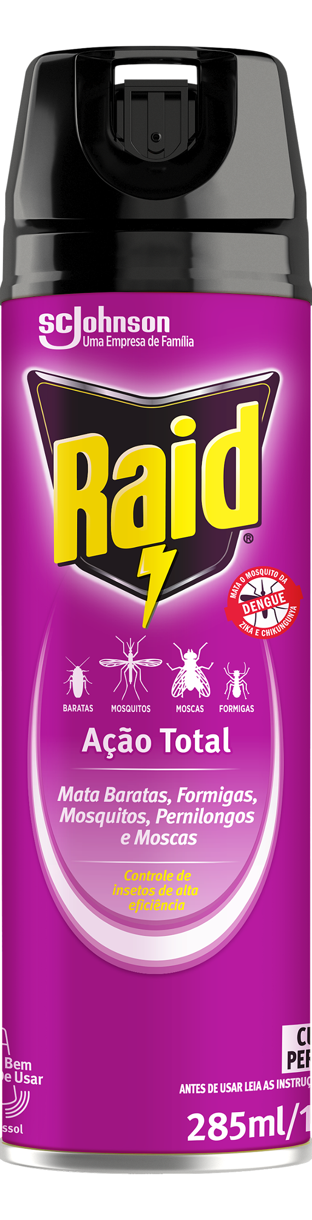 • Raid® Ação Total possui fórmula de alta eficácia, que age contra insetos voadores e rasteiros.