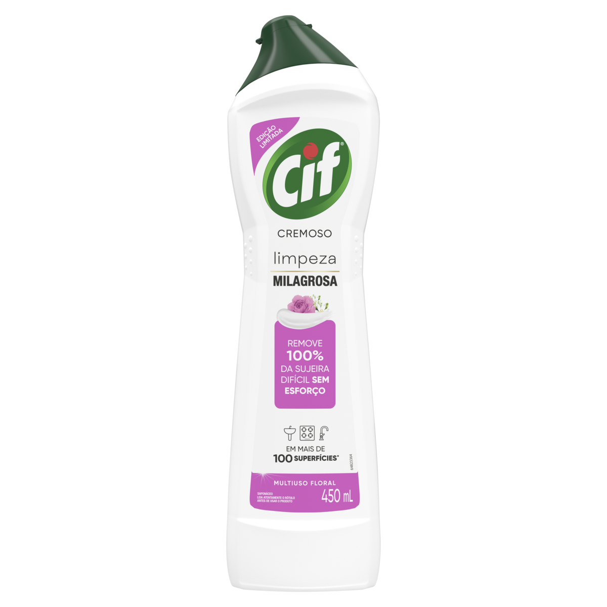 • Cif Cremoso Floral 450 ml é o produto de limpeza milagroso que limpa fácil e dá brilho em mais de 100 superfícies*, removendo 100% da sujeira difícil, sem esforço.